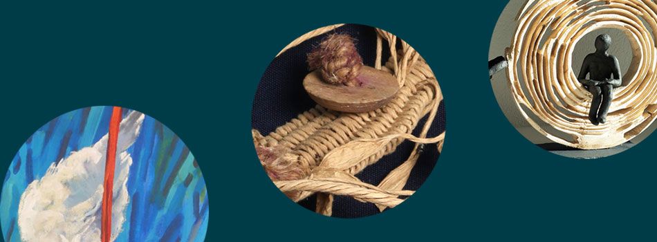 Schriftenmalerei, gewobene Objekte, Filzunikate und mehr zeigen.