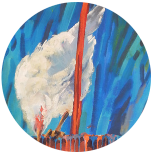 Ich male hauptsächlich mit Acryl- und Oelfarben. Wobei ich die Acrylfarbe zum Skizzieren und Anlegen eines Bildes verwende und nur dünn auftrage. So kann ich danach mit der Harzoelfarbe sehr frei arbeiten, ohne mir noch gross Gedanken zu Komposition und Form zu machen.
